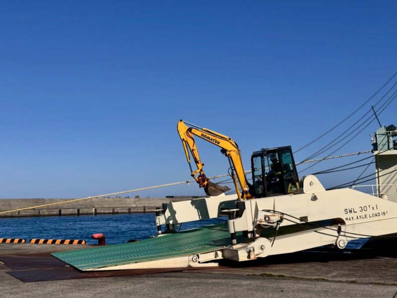 僕の住む竹島にはバックホーが無いので隣の硫黄島からお借りしました。