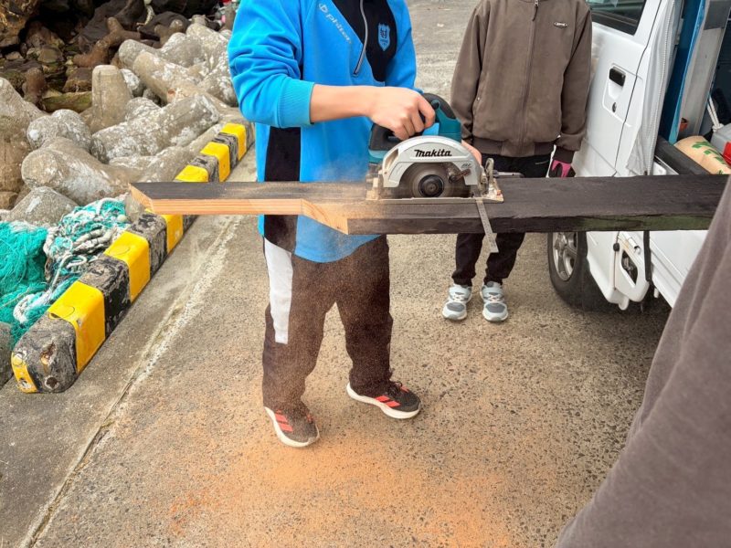 今回、自然公園に設置する拾い箱づくりを子供たち、ECOFF、島の人で作りました!