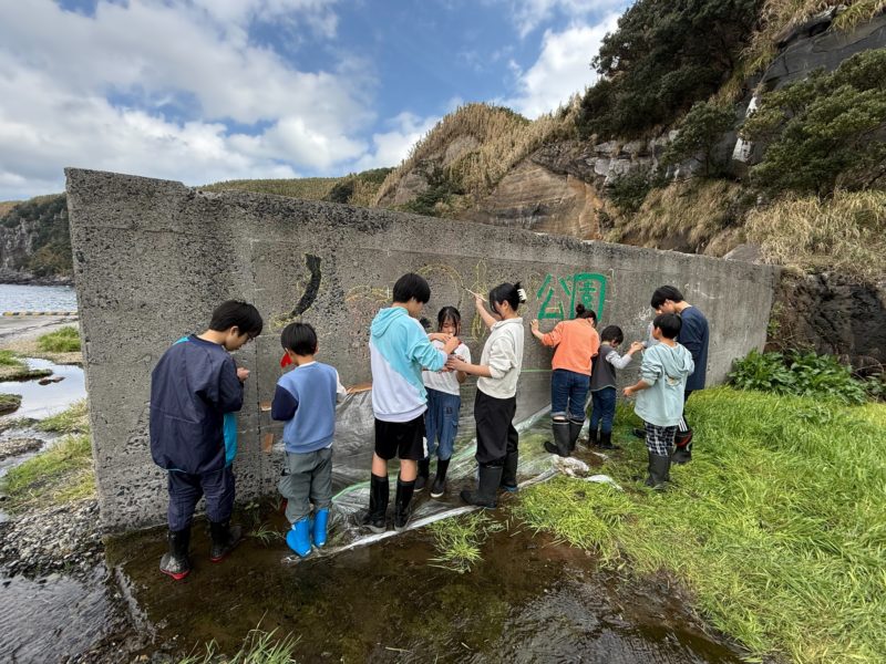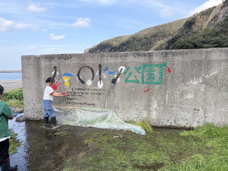 その間ほかの子供たちはペンキを見ながらどういう配色にしようかとか考えていたり、公園のごみ拾い、池の中に石を配置して生き物の家を作ったりしていました。