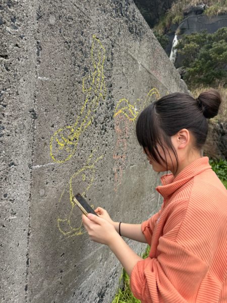 デザインも考えてきてくれたのでまずそれをコンクリに下書きしていきます。